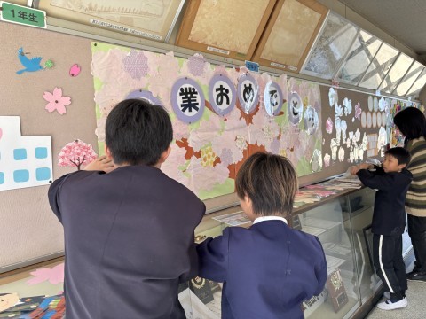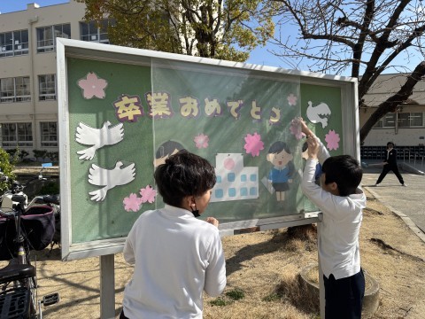 いよいよ明日は卒業式。今までお世話になった6年生たちがいい卒業式を迎えられるよう,在校生代表として5年生たちが体育館や学校全体をきれいに掃除し,飾り付けなど準備をしてくれています✨ みんなで最高の卒業式にしましょう🌸