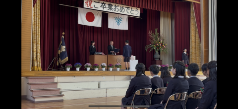 式では,一人ひとりが堂々と返事をし,校長先生から卒業証書を受け取りました。堂々とした姿から,これまでの成長が感じられました。
