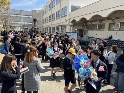 いよいよ卒業生の巣立ちです。青空のもと、校門をくぐり卒業していく卒業生たちを来賓の皆様、保護者の皆様、5年生の児童やのびのびルームの児童、そして職員で見送りました。「おめでとう!」「がんばってね~」など温かい声かけと拍手で包まれました。卒業生の皆さんの今後の活躍を心より願っています。