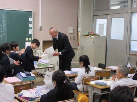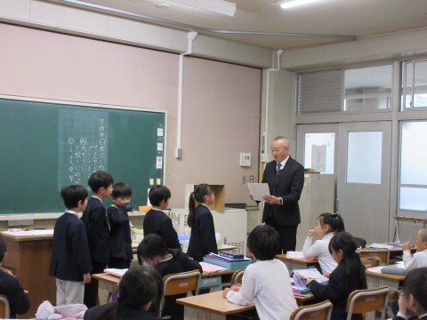 1年1組でたくさん本を読んだ児童の表彰がありました。