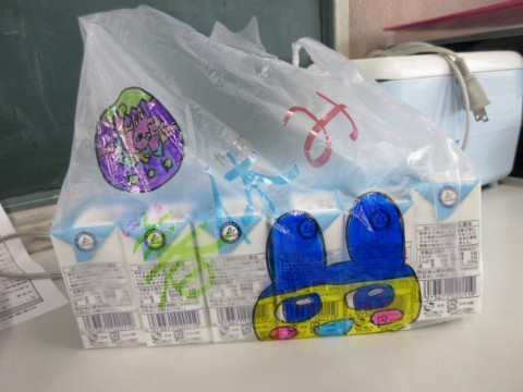 調理員さんからは牛乳の袋に「たまごっち」のイラストが💗うれしいサプライズプレゼントです✨
