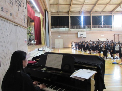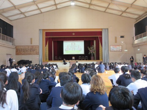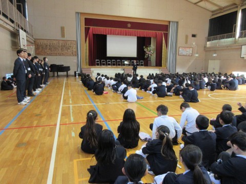 みんなで校歌を歌った後,校長先生の話し,生徒指導主事の先生からのお話しがありました。