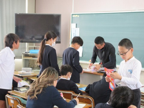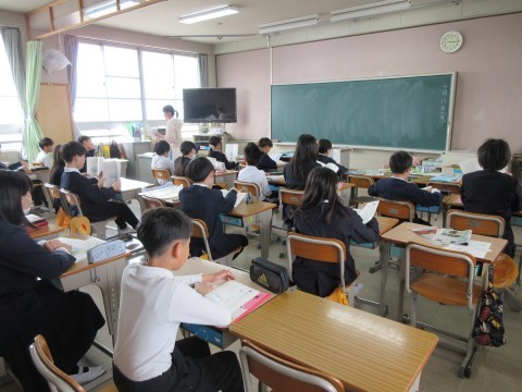 1組は国語。教科書の初めに出てくる『準備』という詩を群読していました。作者は,みんなにどんなことを伝えたいのかな。