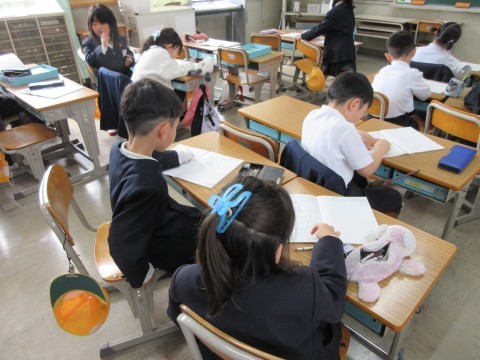2組は算数。図や式を使って、自分の考えを書くことができていました。お友だちに上手に説明している子もいましたよ☺✨