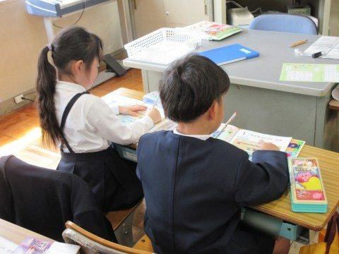 1組は、ワークを使って数字の1の練習です✐ ワークの点線からはみ出さないように、ゆっくり丁寧に書いていました☺