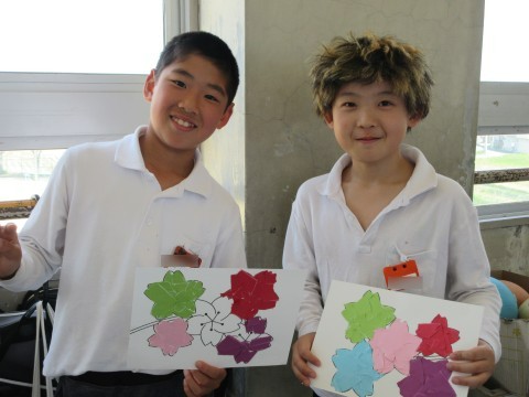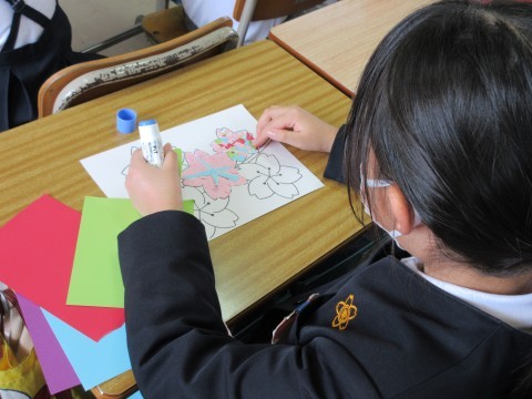 1組は図工。ちぎり絵で、色とりどりの素敵なお花を咲かせています🌸春らしくていいですね!!