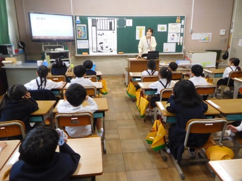1組も2組も給食の準備の仕方や、食べる時に気を付けることなどを