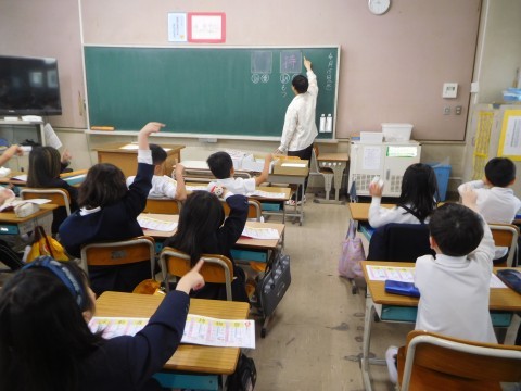 1組も2組も国語の時間です。漢字の学習をしています。