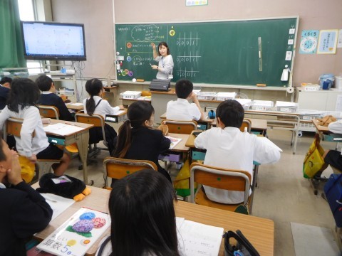 1組は理科です。5年生は理科専科の先生が指導してくれます。