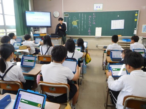 3組は、5年生になってあらためてタブレットの使い方の確認をしています。