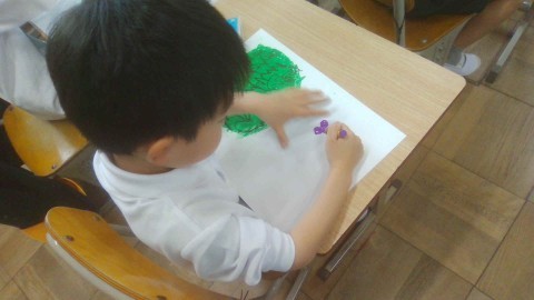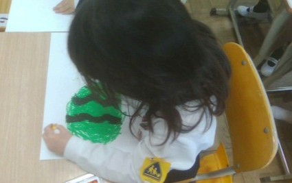 今日,初めて図工をしました。「すきなくだもの」の絵を描きました。描く前に,「私はりんごが好きです」「ぶどうが好き」と,たくさん教えてくれました。そのあとに,画用紙に描いていきました。みんなの果物は,とっても美味しそうでした。参観の日に,教室に掲示しますのでぜひ,ご覧ください!!