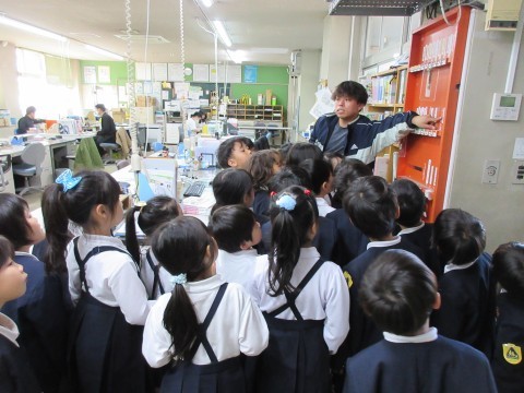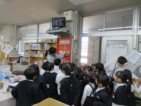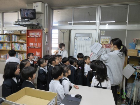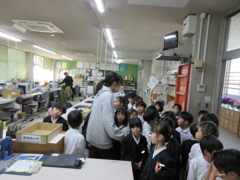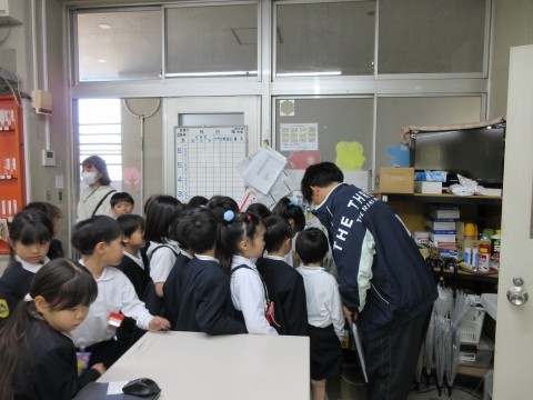 小さなお客様がたくさん!!一年生が自分たちの教室の鍵や体育館の鍵の場所などを確認に来ました。