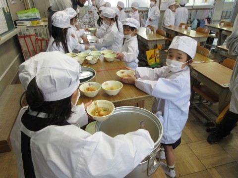 4/16 1年生給食の様子 公開日 2026/04/16 更新日 2026/04/16 1年 1年生,給食2日目です。とっても上手に手を洗い,準備をし,重たい食缶を運びます。自分たちで配膳し,もぐもぐ食べている姿!!!なんてすばらしいのでしょう✨とても早く準備をできました💗 +6