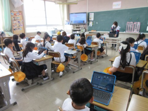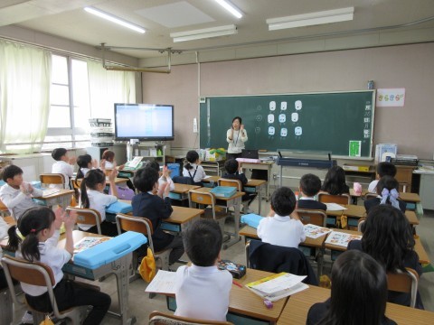 2組は音楽。今年から2年生も音楽の時間は専科の音楽の先生が担当してくださいます。子どもたちは初めて,担任とは違う先生の授業です。少し,緊張していたようですが,リズム打ちなど楽しいことがたくさん🎵だんだん笑顔になってきました💖