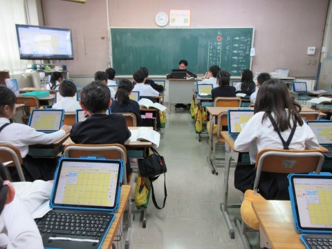 1組は物語の不思議に思ったことについて,タブレットで意見を交流していきます。
