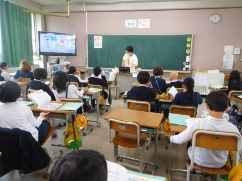 1組は外国語です。まずは、新しく使う教科書に出てくる登場人物をみんなで確認しています。