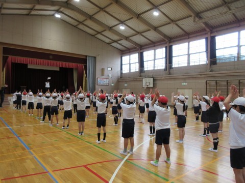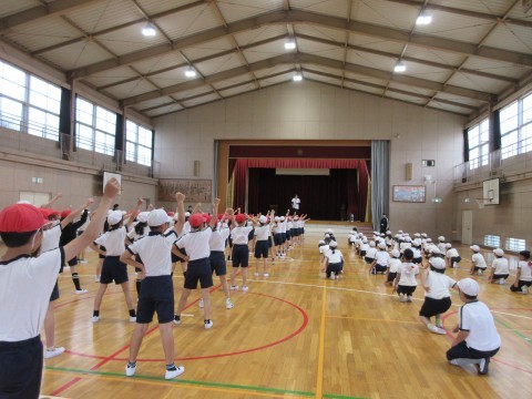 体育館で早速,動きの練習も始まりました!さあどんな曲かな?楽しみです🎵