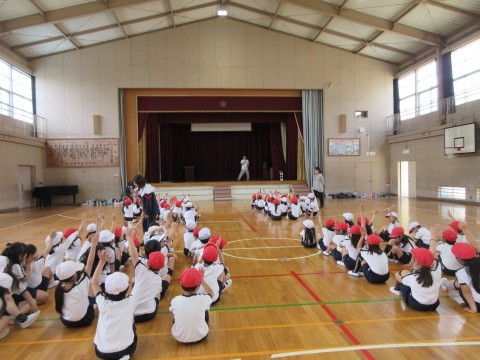 その後,堺っ子体操の練習です🎵一年生は初めて聞く曲。初めての体操。覚えることがたくさんです💦楽しく体を動かしてね!