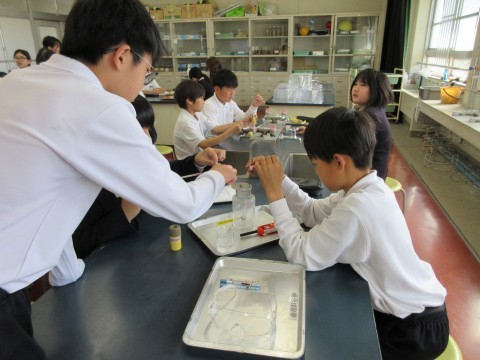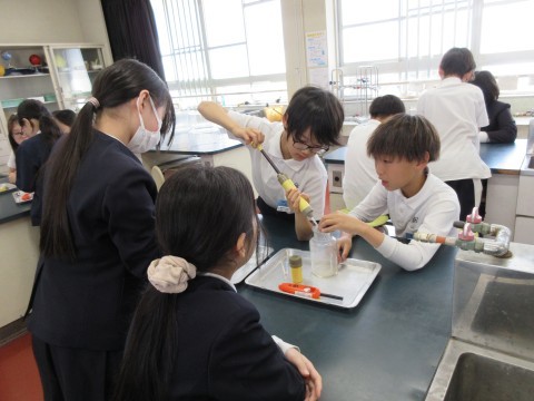 1組は理科「物が燃えるとき,空気の期待にはどんな変化があるのかな?」の実験をしていました。