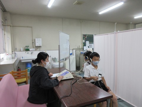 保健の先生の説明を聞いてからいよいよ聴力検査です。