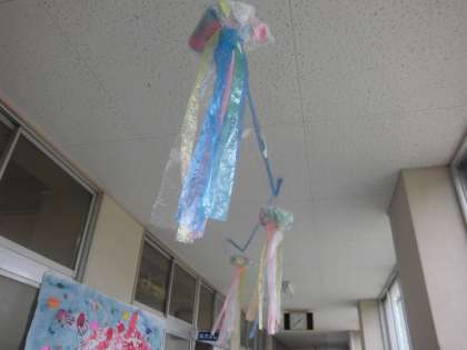 教室前の廊下には、なかよしの子どもたちの作品が飾られていました。