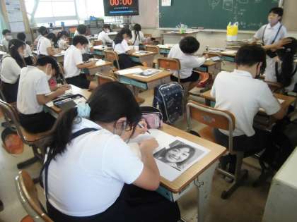 図工では、先生の顔を描きました。作品を見るだけで、誰先生かが分かるぐらい、とても上手でした。