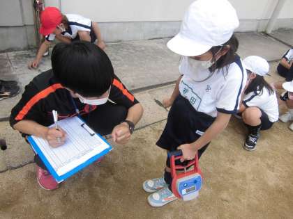 初めてのスポーツテストを体験しました。運動場で50m走,ソフトボール投げ,握力の測定を行いました。