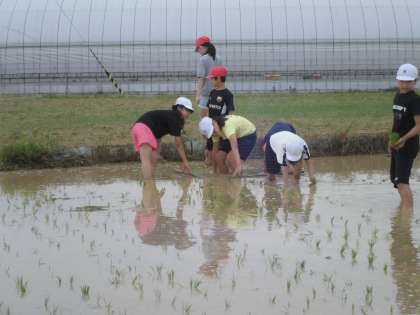服がドロドロになりましたが、お米を作るのは、それだけ大変な作業だということが分かりました。学校でもバケツ稲をします。大事に育ててほしいと思います。