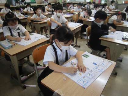 教科書をもって音読をしていました。とても美しい姿勢でした。 ひらがなの学習もどんどん進んでいます。