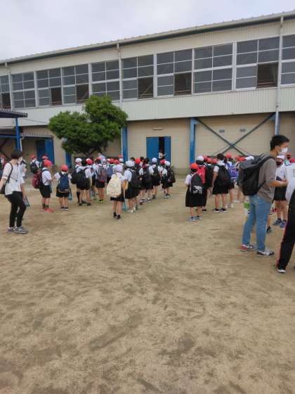 先生方のお話を聞いて、バスに乗りました。さあ、出発です。