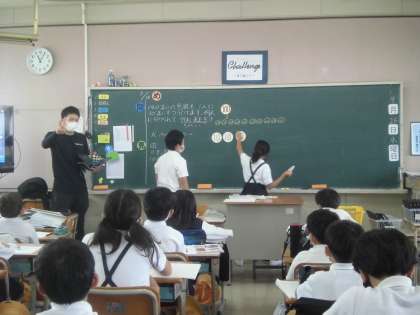 何十でわる,あまりのあるわり算のやり方を考えて,みんなの前で発表しました。