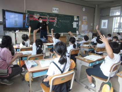 国語は、自分たちで調べたい生き物を見つけて「うみのいきもの」の文章のようにワークシートにまとめていました。もう少しで完成しそうです。