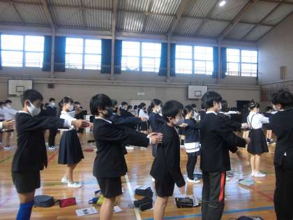 木曜日からの修学旅行に向けて、学年集会をしました。諸注意や並び方の練習をしました。用意が済んでいない人は、前日慌てないように今日中に済ませておきましょうね。