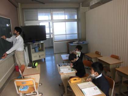 4年生は「世界にほこる和紙」の学習をしています。先生が本物の和紙を持ってきてくれました。ノートの紙と感触が違いました。