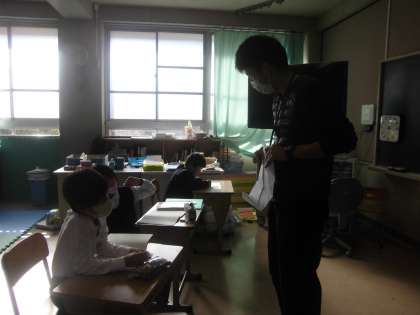 2年生は九九プリントで九九の練習をしていました。すらすらと答えていました。