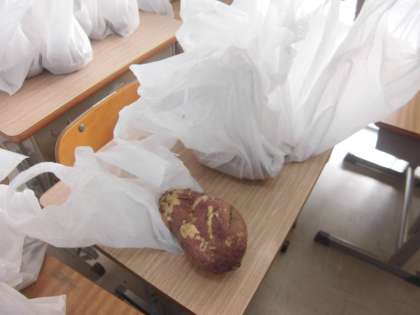 昨日収穫したさつまいもを先生たちが仕分けしていました。お家でおいしくいただいてね。