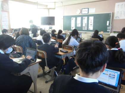 伝統工芸の品物をリーフレットにして紹介します。お手本を参考にしながらどんなものを紹介するか考えていました。