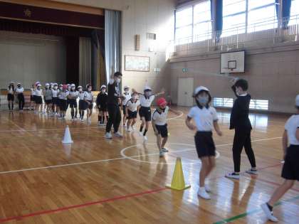 運動場では走り幅跳び,体育館では大縄跳び,肌寒くなってきましたが子どもたちは元気に飛び跳ねています。
