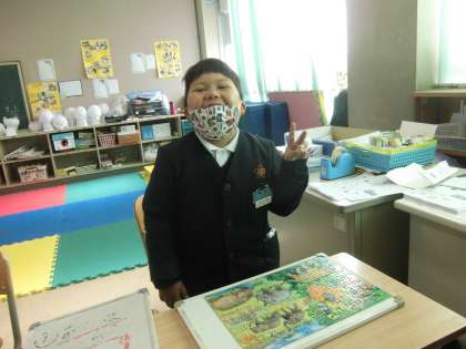 今日は6年生がいなく先生も少ないですが飛び切りの笑顔でがんばっています。