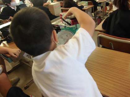 社会では消防の役割や設備について学びました。算数でははかりを使いました。ランドセルなど身近なものの重さをはかってみました。