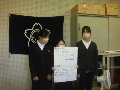 給食委員会からは、給食を残さず食べられるように、残食がなかったクラスにはシールを貼っていくそうです。給食場の方のメッセージも紹介してくれました。