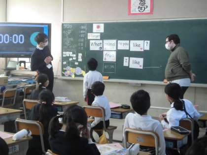 「Like」の使い方を学びました。好きなものを尋ねたり,答えたりしました。