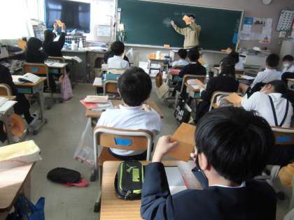 「世界に誇る和紙」を学習しているので本物の和紙に触れてみました。触った感じ,光の通し具合,重さなどいろんな意見が出ました。