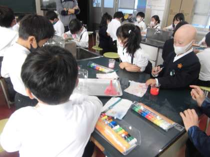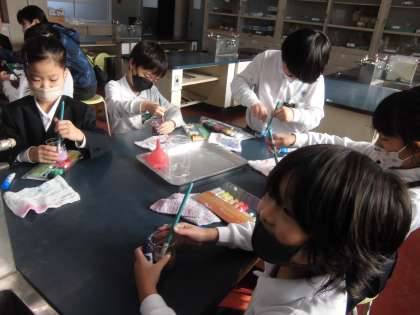 絵具で自分の好きな色のジュースを作りました。イチゴミルクやメロンソーダなどみんなで思い思いのジュース作りを楽しみました。