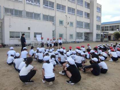 クラス対抗で台風の目やはしごドッジをしました。初めの言葉や表彰も自分たちでがんばりました。