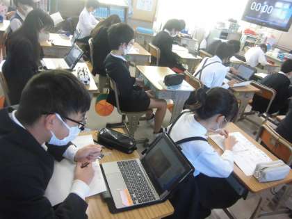 理科では、水溶液の性質について、学習してきたことをタブレットなどで調べてまとめていました。