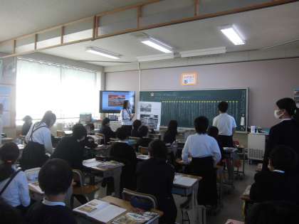 社会では、江戸時代と明治時代の違いや、ペリー来航について考えていました。全員発表をして、似ている考えなどをまとめていました。