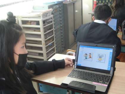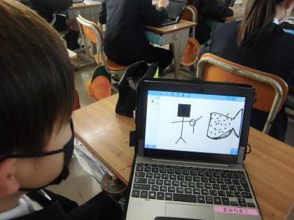 絵と文字を使って言葉を作る「判じ絵」に取り組みました。自分たちで問題を作って答えあいをしました。