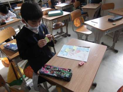 自分たちの絵本ができあがりました!みんなで読みあって,感想を付せんに書いて送りあいました。