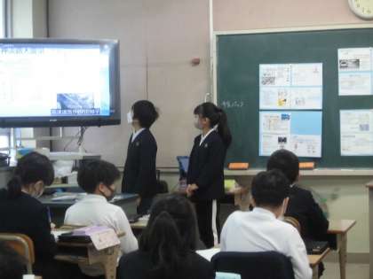 これまでに起こった大きな災害や,災害時にどうすればいいのかなど,防災についてまとめたパワーポイントを発表しあいました。